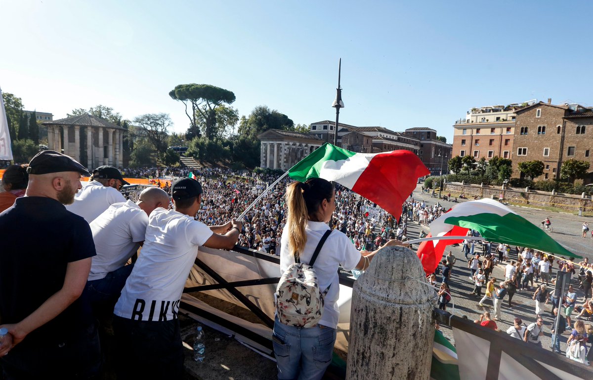 شهدت العاصمة الإيطالية روما، تظاهرة واسعة احتجاجا على التدابير المتخذة لمكافحة وباء كورونا.