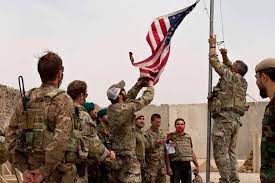A US flag is lowered as American and Afghan soldiers attend a handover ceremony from the US army to the Afghan army in Helmand province. [AP photo]