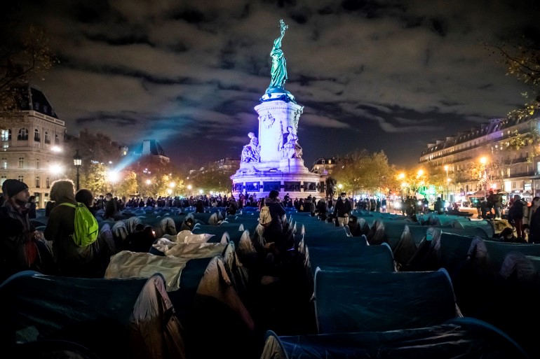 Interior minister describes footage of people being thrown out of tents in Paris as ‘shocking’, as an internal police probe is opened.
