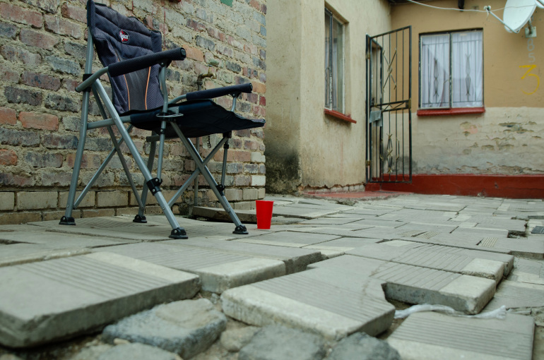The chair and plastic cup Collins drank from. [Sune van Tonder/Al Jazeera]